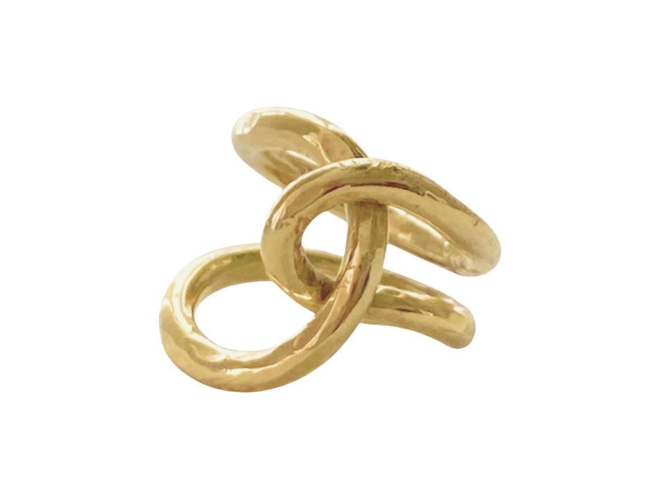 Diseño en forma de lazo entrelazado en latón hecho a mano. Hecho en México.