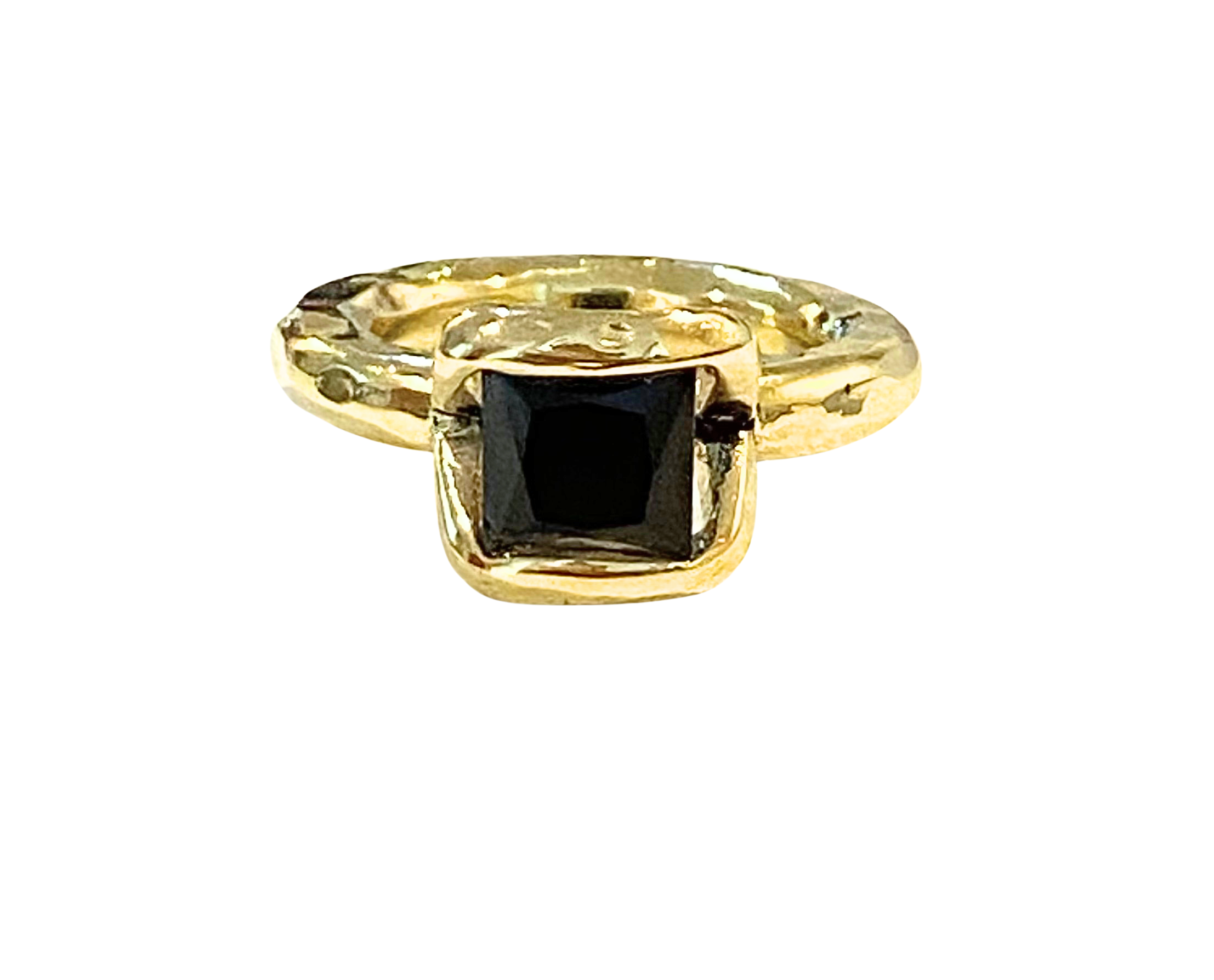 Diseño hecho en latón con piedra ónix negra cuadrada. Hecho a Mano en México.