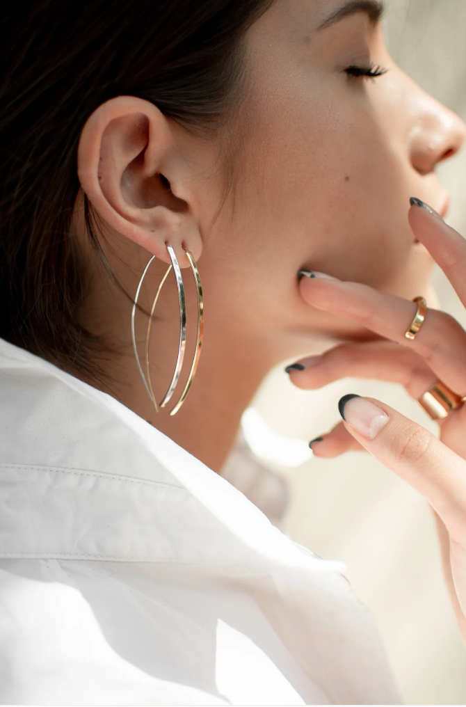 Aretes con baño de oro 14k y rodio.6 cm de largo. Hecho artesanalmente por joyeros mexicanos.