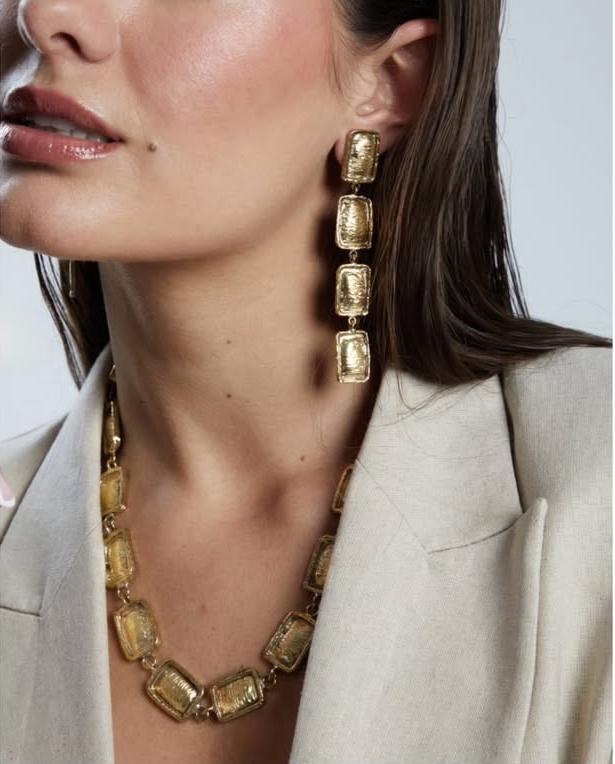 Diseño Cuatro Rectángulos Hecho a Mano en Latón. Largo 10 cm.
