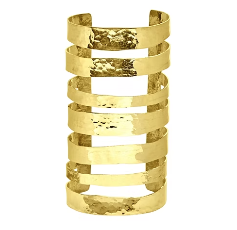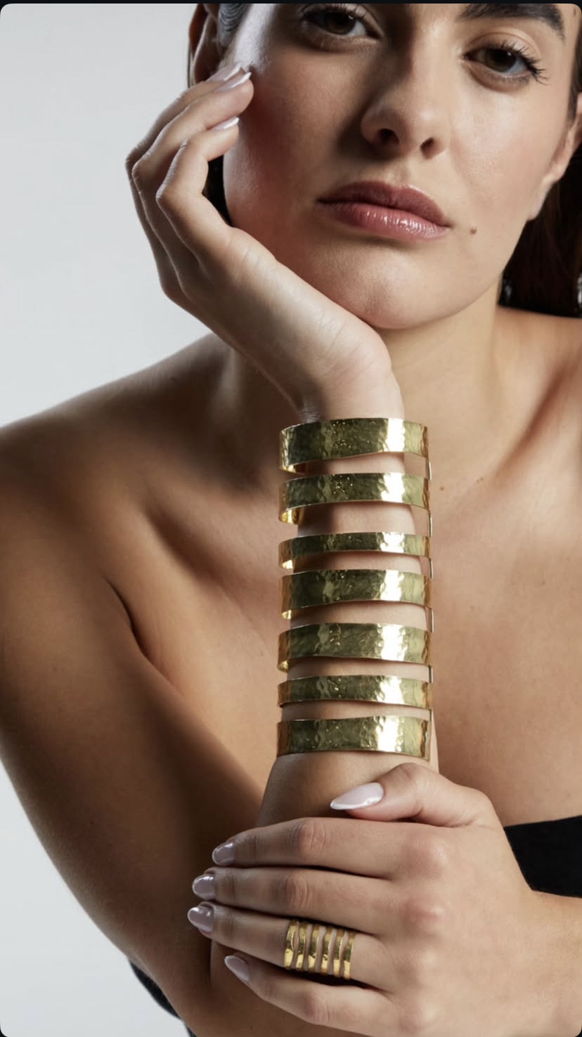 Diseño hecho en latón martelé. Láminas delgadas. Ajustable. 13 cm de largo. Hecho a Mano en México.