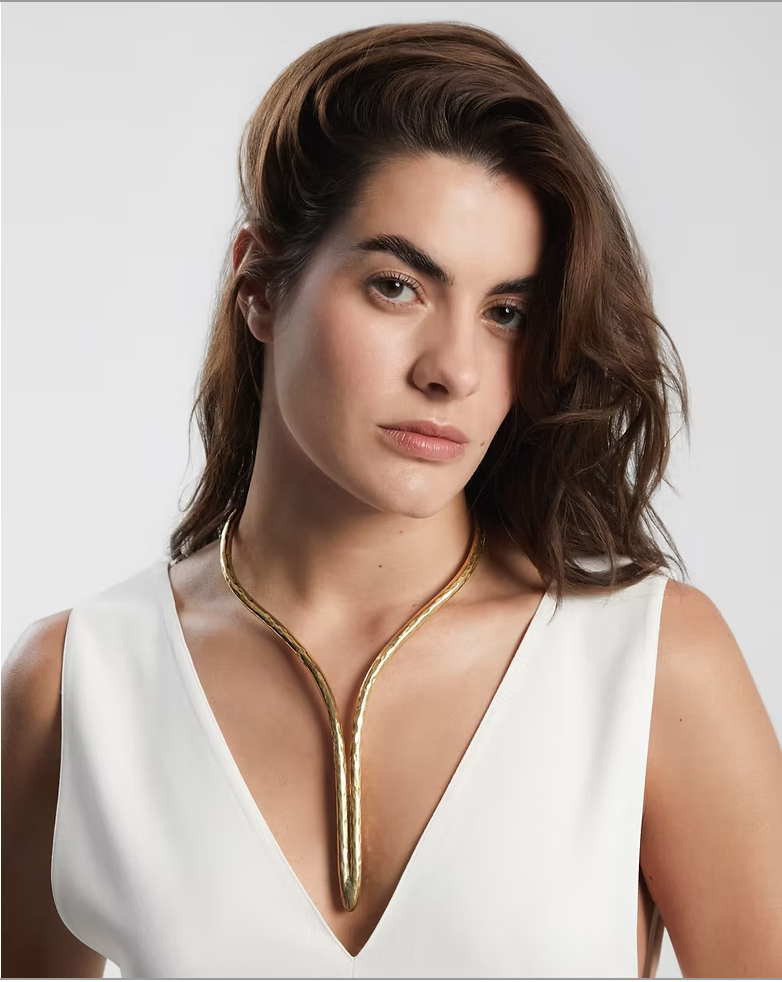 Diseño en forma de V Hecho en Latón Martelé a Mano. Largo 28 cm. Hecho en México.